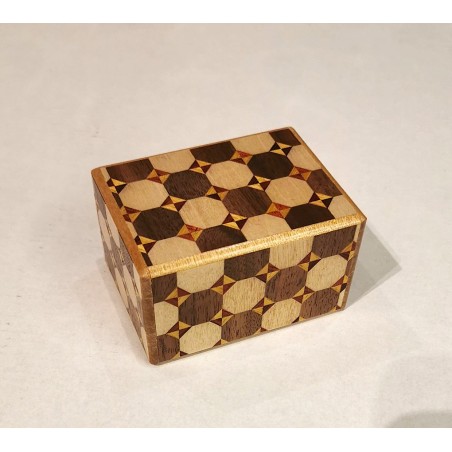Cette mystérieuse boite casse-tête nous vient tout droit du Japon ! Également appelée himitsu bako, ce petit objet est réalisé en marqueterie dans un atelier artisanal de la région de Hakone, au Japon. Pour réussir à ouvrir la boite il vous faudra trouver les 12 étapes nécessaires à l'activation du mécanisme qui permet de libérer le couvercle.