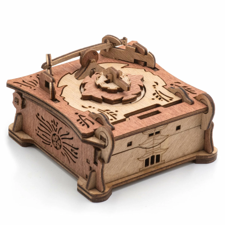 Casse-Tête Samurai Box. Cette boite contient un compartiment secret dans lequel vous pourrez glisser un petit objet une fois que vous serez parvenu à résoudre le mécanisme d'ouverture.