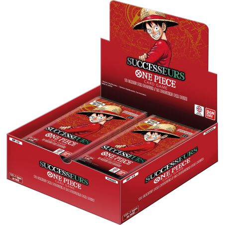 Le display arbore un design vibrant et coloré, mettant en avant les personnages emblématiques de l'arc des Successeurs. Avec des illustrations dynamiques et des détails saisissants, chaque carte est une œuvre d'art qui capturera l'attention des fans. Que vous soyez un fervent admirateur de Luffy, Zoro ou Nami, vous trouverez ici des cartes qui vous feront vibrer !