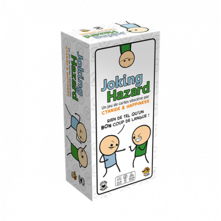 Joking Hazard est le jeu d’ambiance irrévérencieux pour adultes inspiré de la bande dessinée à succès CYANIDE & HAPPINESS. Parmi les millions de combinaisons possibles, qui produira le comic en 3 vignettes le plus indécent de la compétition ? Réalisez les meilleures planches de BD à l’aide de vos cartes ! Attention, âmes sensibles s’abstenir !