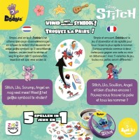 Le personnage culte de Disney débarque avec tous ses amis dans cette édition de Dobble ! Retrouvez tous les compagnons de l’expérience 626, échoué à Hawai et qui s’est parfaitement adaptée à son monde d’accueil, notre Terre.