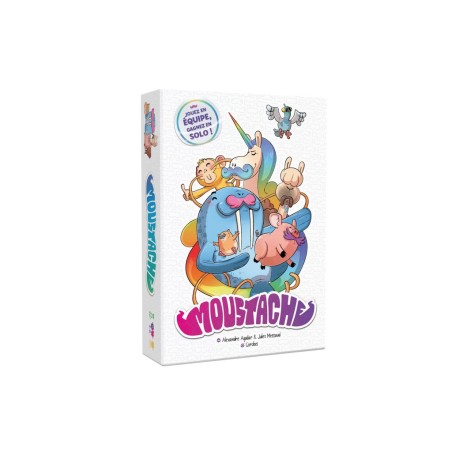 Moustache, c’est bien plus qu’un simple jeu de plis : c’est un concentré de stratégie, de chaos organisé et de surprises en cascade ! Ici, rien n’est figé : les équipes changent à chaque manche, les alliances se font et se défont, et de nouvelles règles viennent s’ajouter progressivement, transformant la partie au fil du temps. Chaque manche devient un mini-défi où il faut lire le jeu de ses adversaires… mais aussi de ses alliés temporaires. Bluff, adaptation et sens du timing sont de mise pour tirer votre épingle du jeu dans cette compétition en constante évolution.