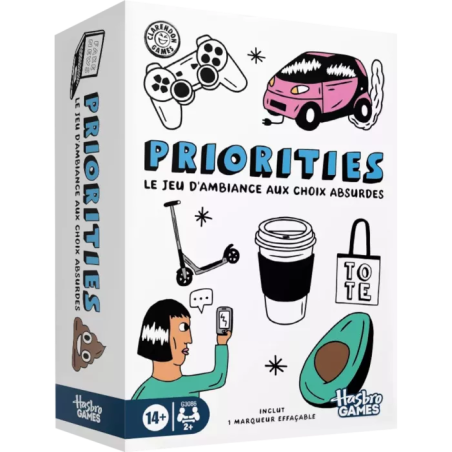 Priorities, le jeu d’ambiance où vos choix les plus absurdes révèlent vos préférences ! Classez des cartes du quotidien du plus aimé au moins apprécié… et essayez de deviner le classement des autres joueurs. Ambiance, honnêteté et surprises garantis, le tout en équipe pour battre le jeu !