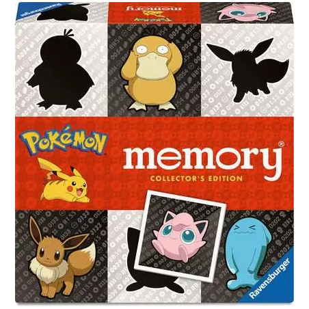 Jeu de Memory Pokémon. Retrouvez le plaisir de jouer au plus célèbre des jeux de mémoire avec les Pokémon en vedette ! Toute la famille s'amuse à retrouver des paires d'images identiques, en développant son sens de l'observation et sa capacité de mémorisation. Le memory® permet d'initier tout en douceur les plus jeunes aux jeux de société. Il suffit de quelques secondes seulement pour se familiariser avec la totalité des règles. Une fois toutes les cartes disposées face cachée sur la table, toute la famille est prête à jouer !