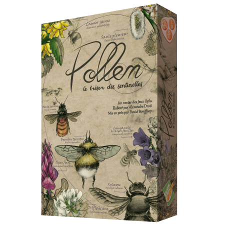 Pollen est un jeu simple, tactique et malin ! Un joueur guidera les Bourdons, l’autre les Osmies. Il faudra que votre espèce soit majoritaire en nombre sur le plus de fleurs possible parmi les cinq présentes à butiner ! De plus, vous aurez chacun 3 fleurs secrètes qui auront la préférence de votre espèce pour vous rapporter des points ! Vous devrez donc placer judicieusement vos abeilles, les déplacer et parfois bluffer pour tromper l’adversaire !