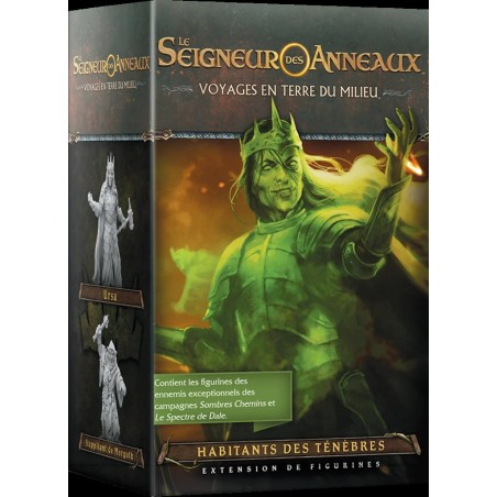 Voyages en Terre du Milieu Extension Habitant des Ténèbres. Cette extension pour Le Seigneur des Anneaux : Voyages en Terre du Milieu contient trois magnifiques figurines, en plastique non-peint, qui représentent les ennemis exceptionnels que vous affronterez dans les campagnes Sombres Chemins et Le Spectre de Dale, ainsi que six objets et trois titres supplémentaires.