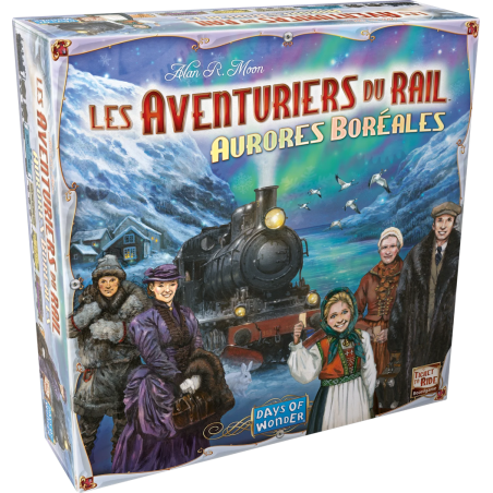 Les Aventuriers du Rail™ – Aurores Boréales est une nouvelle version du célèbre jeu d’aventures ferroviaires. Les joueurs utilisent leurs cartes wagon pour prendre possession de voies ferrées ou embarquer à bord d’un ferry, reliant peu à peu les villes qui figurent sur leurs tickets. Ils doivent aussi garder un œil sur les 4 cartes bonus communes sélectionnées au hasard et qui peuvent rapporter de précieux points en fin de partie.