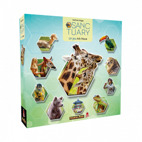 Dans Sanctuary, vous construisez un zoo moderne qui veille au bien-être des animaux et à la satisfaction du public ! Dans ce jeu pour initiés, une infinité de configurations vous attend pour agencer les tuiles Animal, Bâtiment et Projet de votre zoo : vos parties ne seront jamais les mêmes !