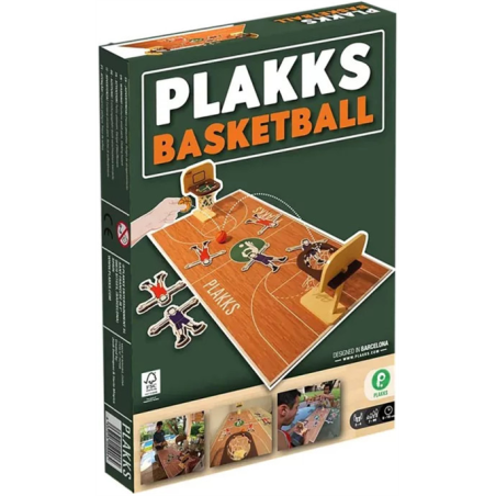 Plakks Basketball est un jeu d’adresse rapide et précis pour 2 à 4 joueurs. Depuis votre camp, vous visez avec le petit ballon en la faisant rebondir sur la surface de jeu et en la faisant décrire une courbe dans le panier adverse. Une partie dure entre 5 et 15 minutes, idéal pour les soirées en famille, les cafés ou des matchs rapides en trois manches gagnantes.