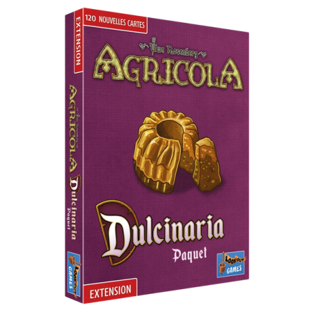 Agricola : Dulcinaria est un paquet d’extension pour le jeu de gestion et placement d’ouvriers multi-primé Agricola. Il enrichit vos parties avec 120 nouvelles cartes, dont 60 Aménagements mineurs et 60 Savoir-faire. De quoi renouveler en profondeur vos stratégies agricoles et surprendre vos adversaires.