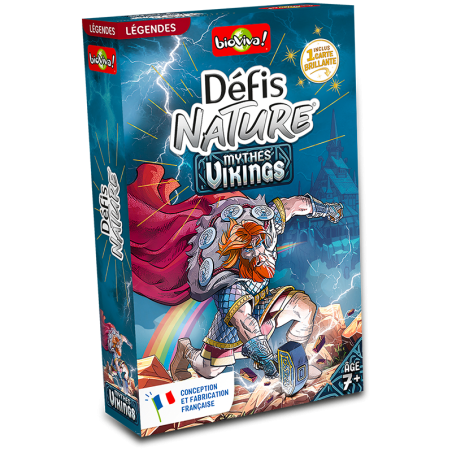 Défis Nature - Mythes vikings vous emmène à la rencontre des personnages emblématiques de la mythologie vikings ! Au travers de cartes superbement illustrées, découvrez les légendes inconnues, puis pariez sur les points forts de vos personnages pour collecter toutes les cartes du jeu et remporter la partie. Alors, prêts à relever le défi ?