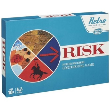 Risk vintage (1968). Le célèbre jeu de la conquête du monde en édition RETRO collector ! Le célèbre jeu de stratégie RISK dans sa version originale de 1968. Plateau et cartes reproduits à l'identique de la 1ère version. Pions des armées avec design en bois. Boîte « vintage ».