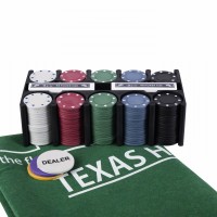 Contenu : 300 jetons Poker US avec marquage chiffré qualité Casino 11,5g, 2 jeux de 54 cartes Copag, 1 jeton, 5 dés, 1 livre de règles.