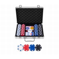 Ce set de poker comprend un tapis, deux jeux de cartes, 200 jetons, un jeton pour le croupier, un jeton pour la petite blinde, un jeton pour la grande blinde. L'ensemble est livré dans une boîte en métal.