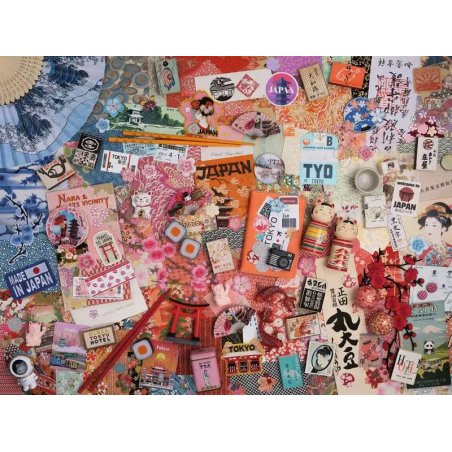 Puzzle 1500 pièces - Voyage à Tokyo. Illustration détaillée présentant pêle-mêle des souvenirs d'un voyage au Japon !
