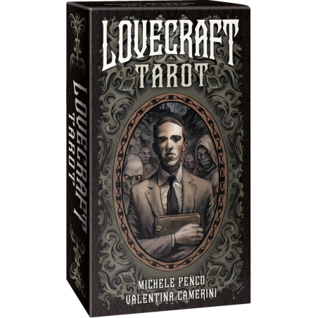 Tarot Lovecraft. Contient 78 cartes pour vos tirages et divination, avec un livret d'instructions multilingue. Design : Michele Penco, Valentina Camerini.